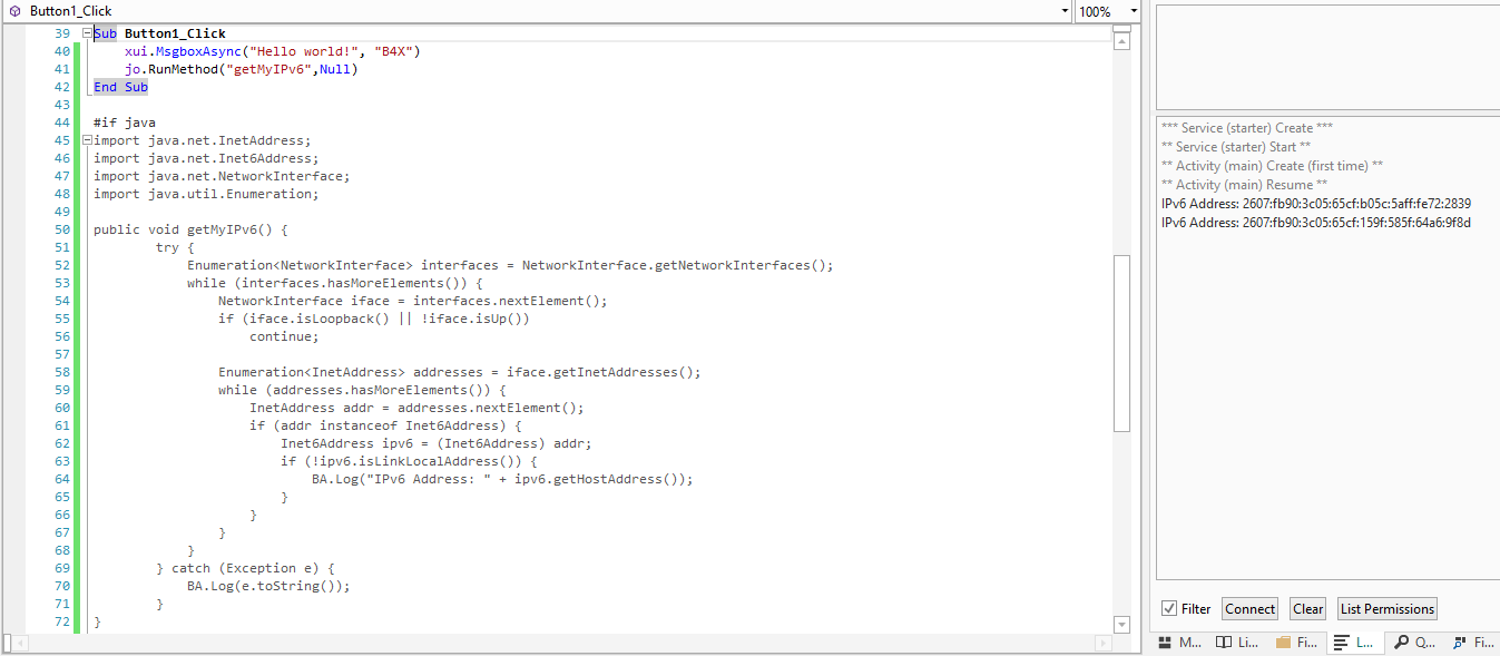 But i can put my question even in this form: How can i find out in B4A the IPv6 Wifi adress of an Android device, may it be private or public ?