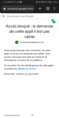 I have a problem with the implementation of the connection with Google on Android. in the code everything is fine, the problem arises when selecting the account the response from google is: