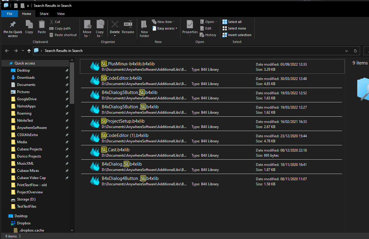 I have included a test project, but under no circumstances can I open a Windows window with File Explorer along with the B4X Library (.b4xlib) files ("SEARCH" as a result).