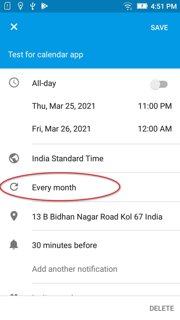 i.e. the above event is made in month of March with repeat 'every month', now when I see events for month April, it does not show.