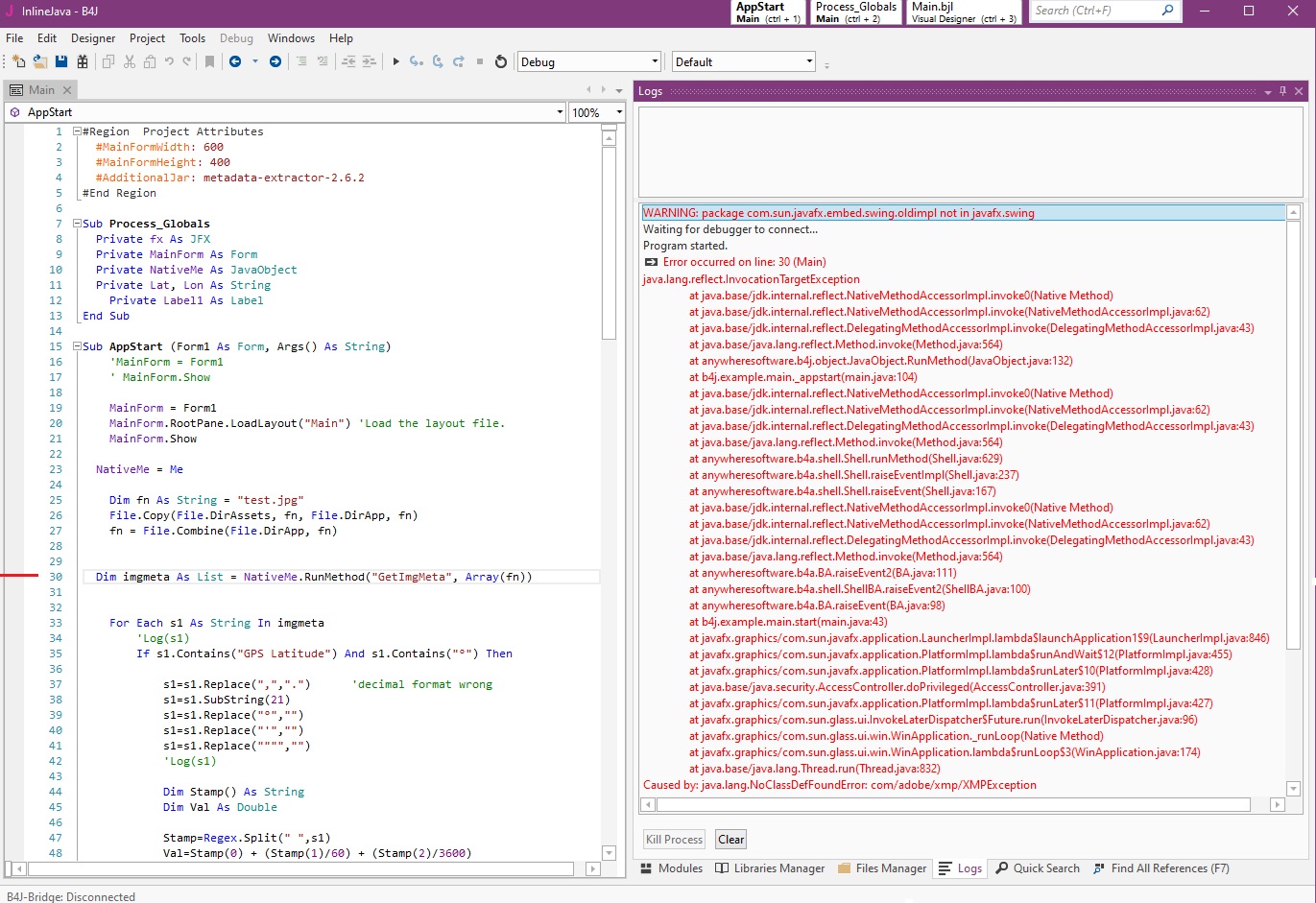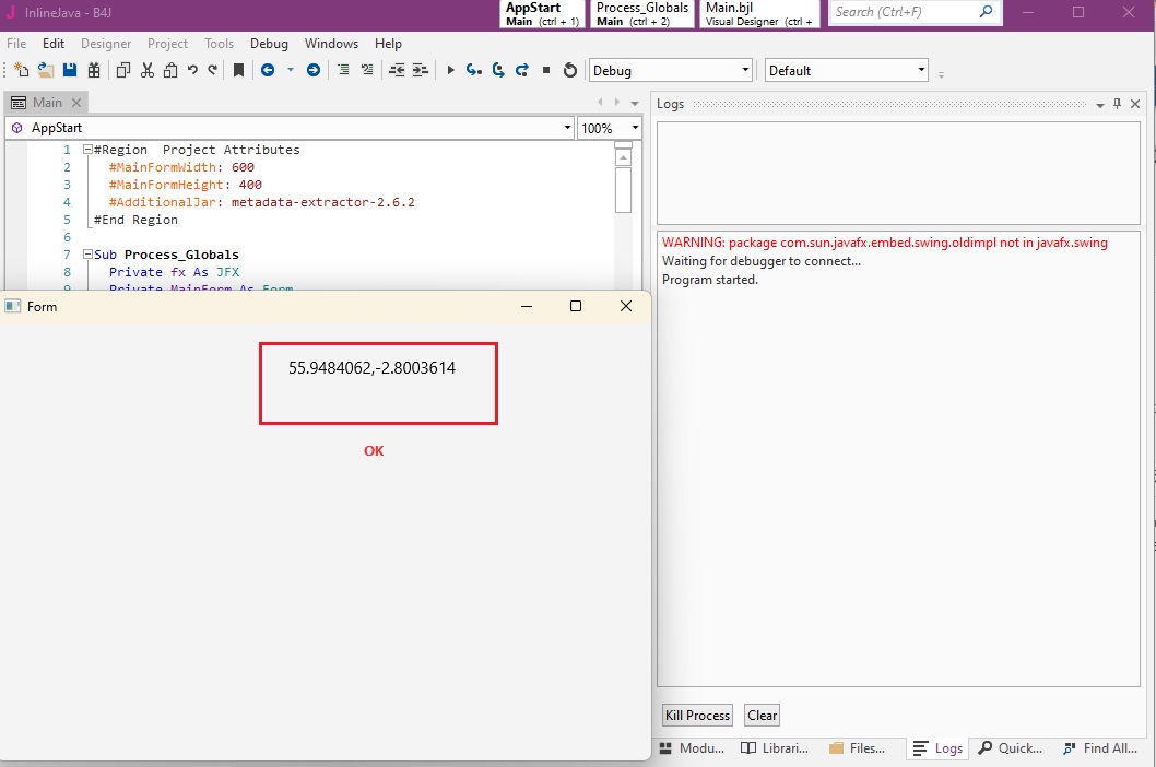 Or is there any other way to read the EXIF metadata (latitude, longitude ...) with B4J?