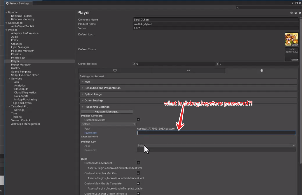 We all know this debug key has no password. Now when I try to put debug.keystore in Unity and compile my game, Unity prompts me to enter the password. But debug.keystore has no password. What should I enter as a password?
