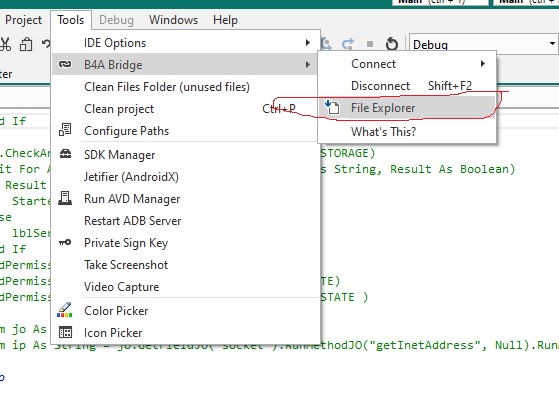 Android Question I have a problem with a program connection B4A-Bridge >> File Explorer