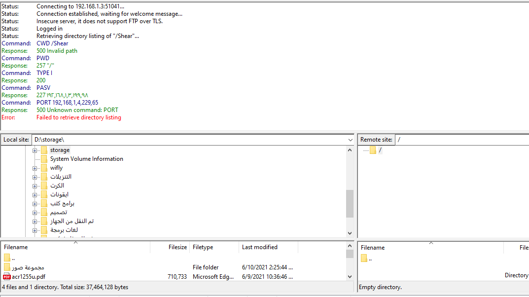 ARROR OCCURRED DURING an FTP Server. Make Sure That You Have Permission To Access this folder.