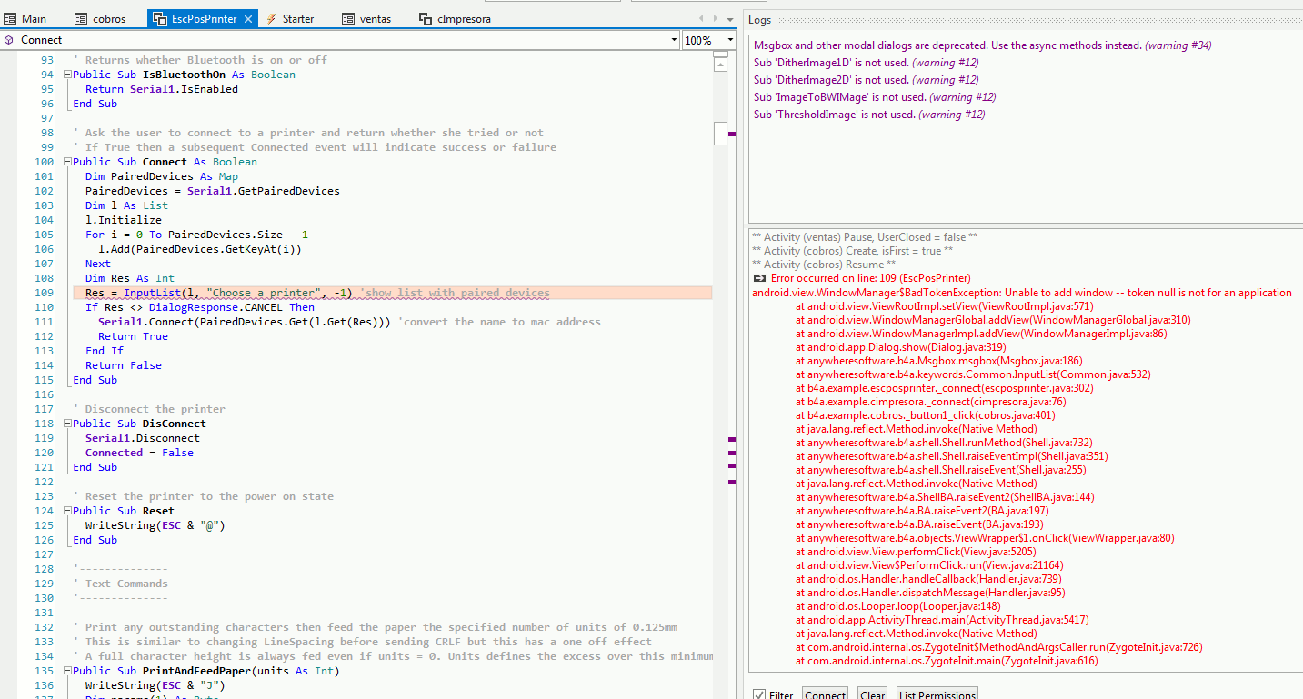 Bueno, voy a crear un hilo nuevo con el tema que me preocupa ahora mismo, porque no sé cómo os puede funcionar "Bluetooth ESCP/POS Printer Class" si no tiene ni siquiera nada sobre permisos.