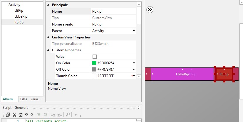 Grazie alle indicazioni e all'esempio datimi ho semplificato molto il programma. La pagina viene costruita con una riga con spinner, una riga con B4Xswitch e altre righe con delle Imageview.
