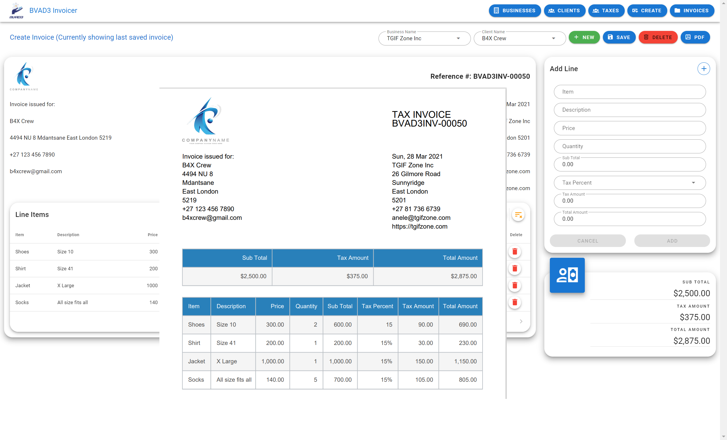 NB: 10. Whilst you are creating your invoices, it is saved to LocalStorage up until you save it to the database.