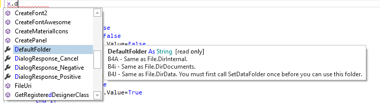 hatzisn said: xui.DefaultFolder for all IDEs Click to expand... Thank you for your advice but it won't work for me - for B4i XUI.DefaultFolder is the same as File.DirDocuments. I need a folder that won't be accessible with the iTunes.