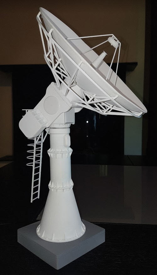 The antenna is 3D printed from a design I made starting with a 6 meter dish antenna picture.