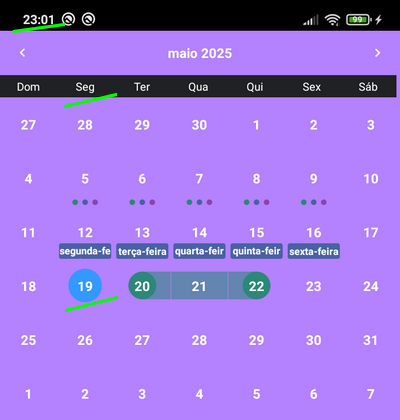 In the expand mode, the select date (20/05 is Seg/Sun) is wrong. but in the expand mode is correct (19/05 is Sun).