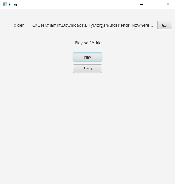 To play tracks in the demo app, press the open folder button and select a folder of Wav files which should be 44100hz sample rate 16bit stereo files..