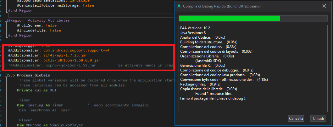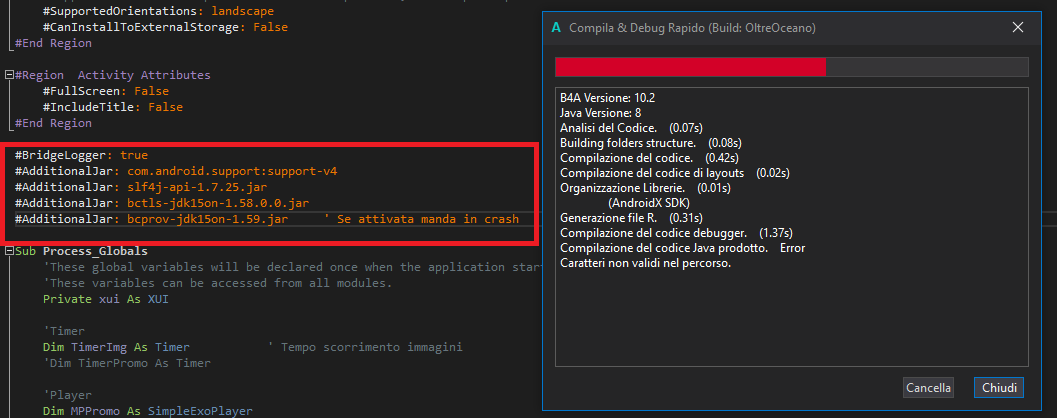 1. If the line "#AdditionalJar:bcprov-jdk15on-1.59.jar" is active, the compiler present an error: "Invalide character on the path"; if i comment that line the app can run (see attached images)