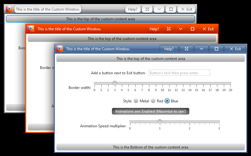 I am very happy to share the first version of my jCustomWindow Library with you guys. jCustomWindow allows you to customize completely the window container of your application and have a consistent style cross-platform.
