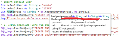 Dim hashedPass As String = bc.hashpw(defaultPass, bc.gensalt) '  bc.HashPassword(defaultPass)