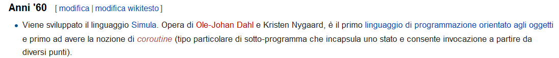 Quindi una cosa oblsoleta ecco perché non é stata implementanta in tutti i linguaggi più diffusi ma solo in alcuniDa Wikipedia - Teoria dei linguaggi di programmazione: