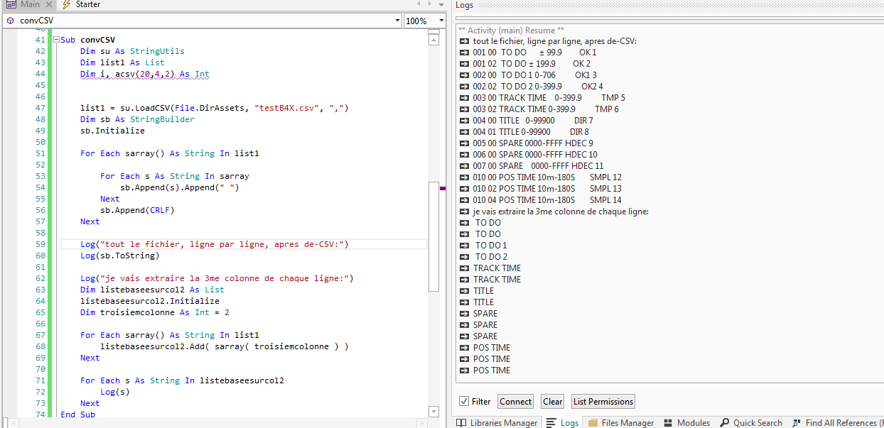 Dans ce programme à la sub private Sub Button3_Click je lis le fichier CSV et filtr la deuxième colone via l'instruction : IDchaine = ""&SecCol.SubString2(4,6), ensuite je crée une liste : listcol2 et la rempli avec l'instruction : listcol2.Add(IDchaine)