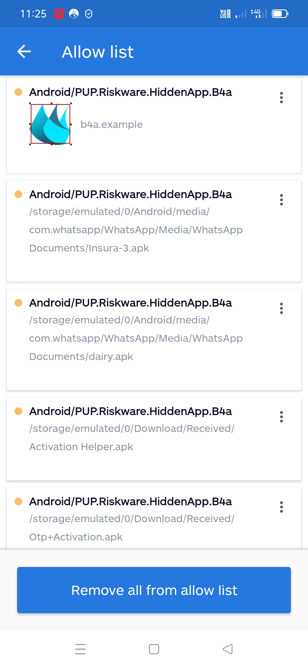 I have just faced a strange issue when i installed malwarebyte app trial on my mobile. It is showing all my apps as ' riskware/hidden app.'