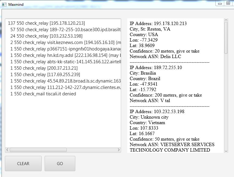 i like to keep a map of the world showing markers where these probes emanate from and a kind of leader board (brazil, we have a winner!). i use maxmind to tell me where these ip addresses are (lat,lon,city,country,network). yes, there are such services available online (maxmind among them), but i'm talking about mapping thousands of hits a day. the online services have limits, and they involve rest access, so there is the expense of starting up and tearing down socket connections over and over. so i use maxmind's databases to handle the lookups.