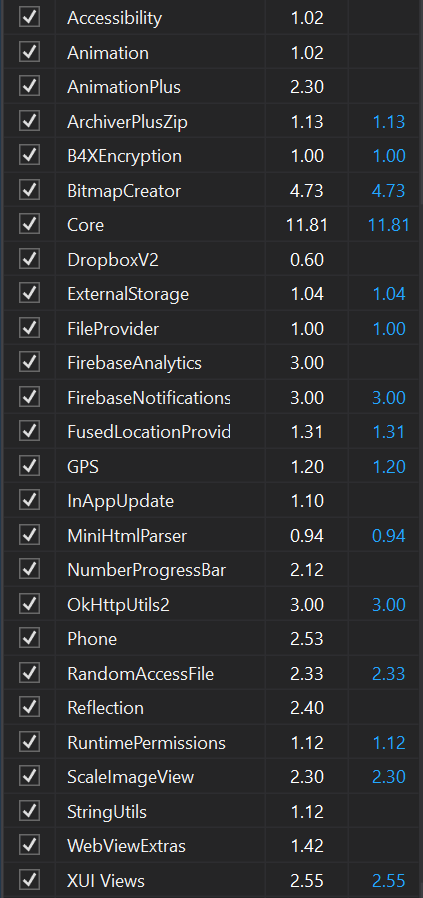 My android application used library: