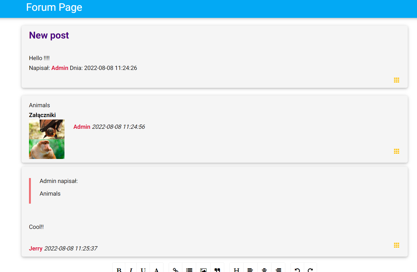 - you can add attachments: currently photos are accepted, the code allows you to manipulate other attachments