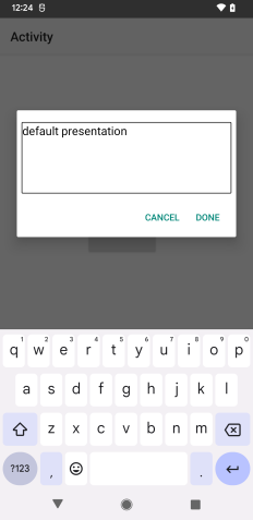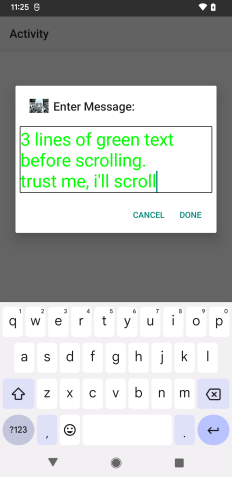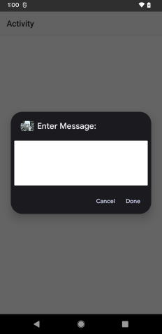 it seems to behave as expected. input area shrinks or expands in accordance with number of lines you expect and text size specified (if any). unzip attached archive and save the .jar and .xml files to your additional libraries folder, and select etdialog from the additional libraries tab in the ide. declare and initialize as per above. if you want an icon on your dialog, you need to load a bitmap in your app and pass it as per above. otherwise pass null when invoking your pop-up. i looked at a number of so-called "themes" before settling on 2: one dark, one light. default is light. set DarkTheme to true to activate it. i realize it's possible to implement something similar with an edittext on a transparent panel, but i didn't want buttons among other design headaches. i prefer the look of a pop-up.