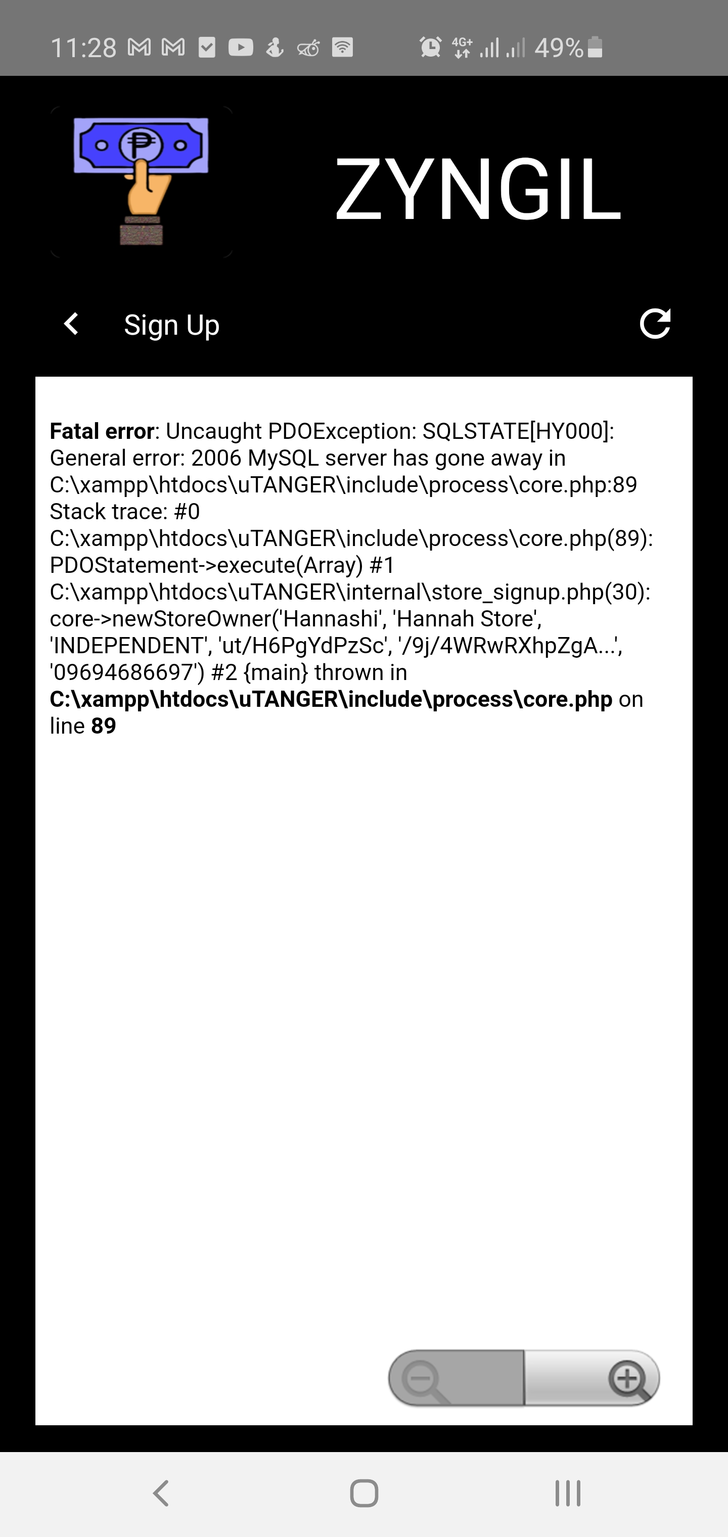 However, upon submission, this weird error occured (image below). I already searched for the solution already (apparently configuring some stuff in mysql and apache), but it doesn't really get resolved.