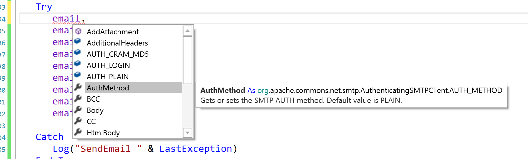 email.Initialize("smtp.gmail.com", 587, "MyEmail@gmail.com", "MyPassword", "EmailClient")
