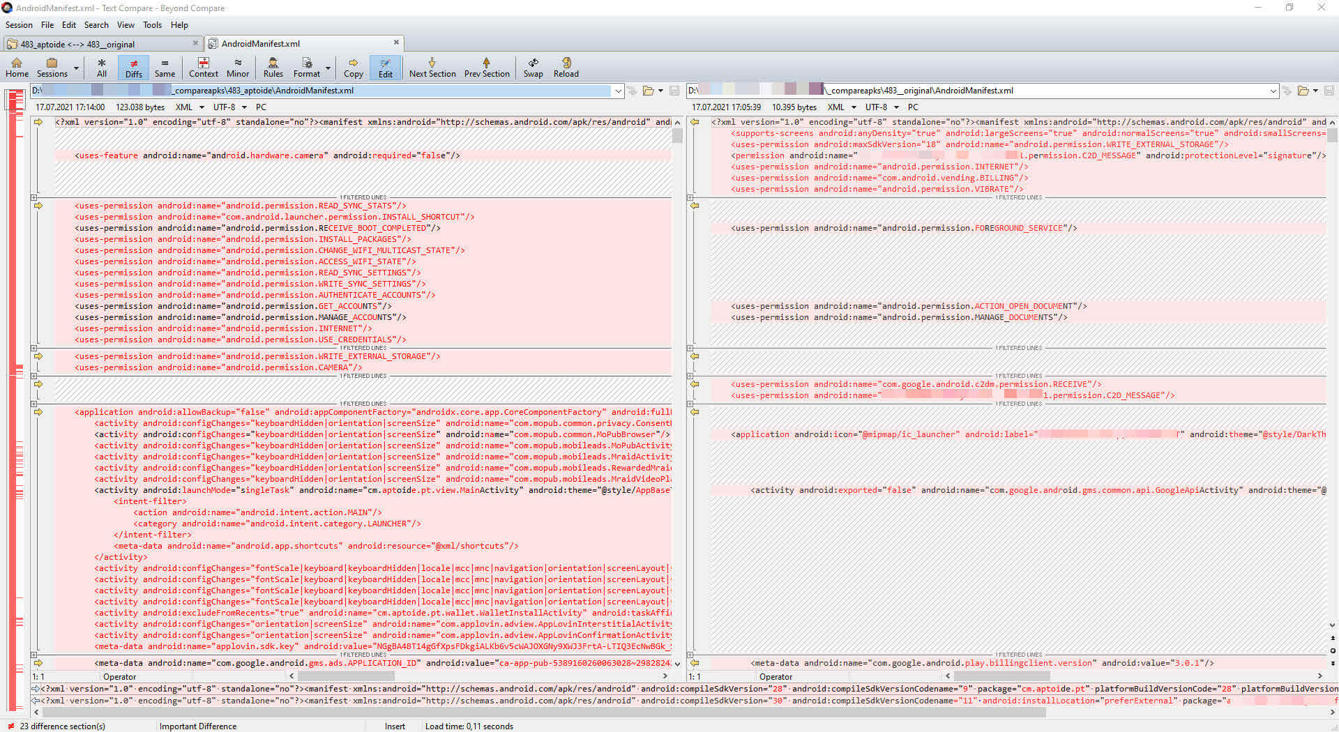 An analysis of the offered APK file and a comparison with the Playstore original revealed significant differences.