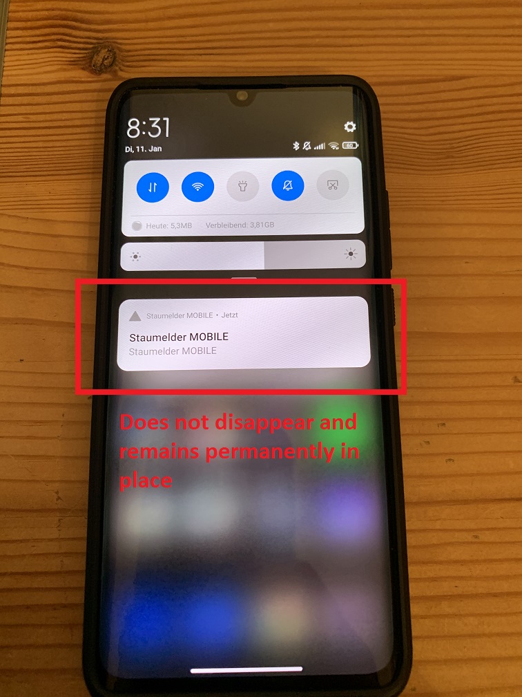 It happens that after one or two days of continuous use of the app, a second notification appears, which cannot be clicked away.