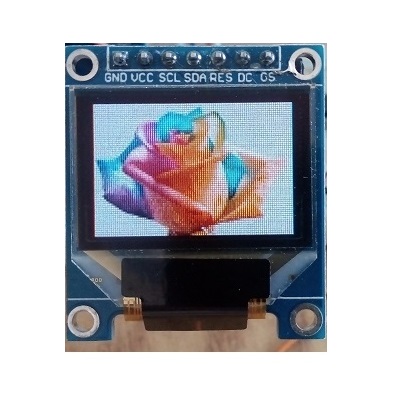 OLED 0.95", SSD1331, 96x64 display driven by Arduino Uno or Nano to display pictures from SD card. The SD is interfaced by the main ATMEGA ISP and the Oled interfaced by USART as ISP. The code reads the SD 96 bytes at a time and streams them to the Oled. Inline C is used to set up the USART ISP, the code also initialize the Oled.