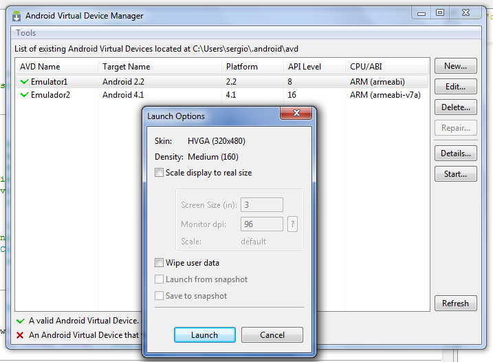 Before writing the first line of code, I need to create a few images: a droid, four ghosts and a maze. This is quickly done; I will spend later more time on the artwork. These first drawings should help define the right size of each element and, of course, allow to build our first prototype. At this stage, all sizes depend on an important decision to take: how will PacDroid be controlled? If I decide to use a touchpad, I will have less space on screen for the maze and other graphic elements. I know that the maze will take a lot of space, so I prefer to use only the accelerometer. Maybe later I will implement a transparent touchpad for the gamers uncomfortable with the accelerometer and for the (very rare) devices without this sensor.