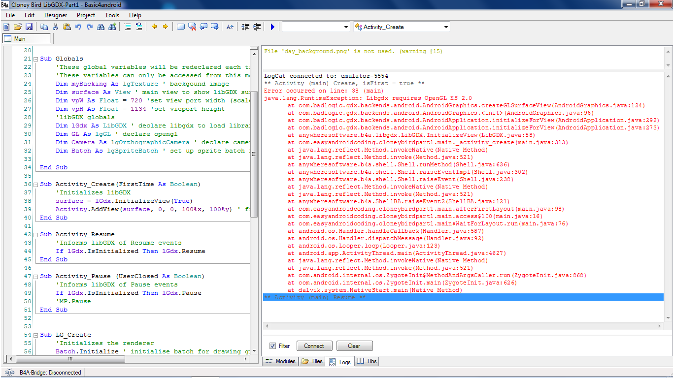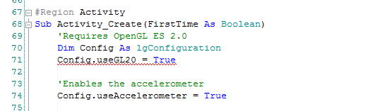The first thing I write is the declaration of libGDX in Globals and in the Activity events:
