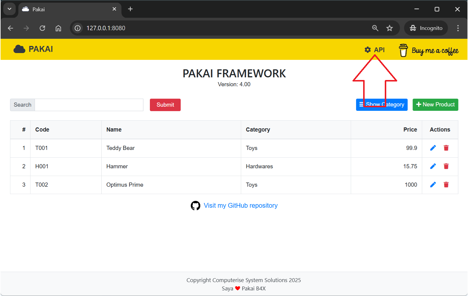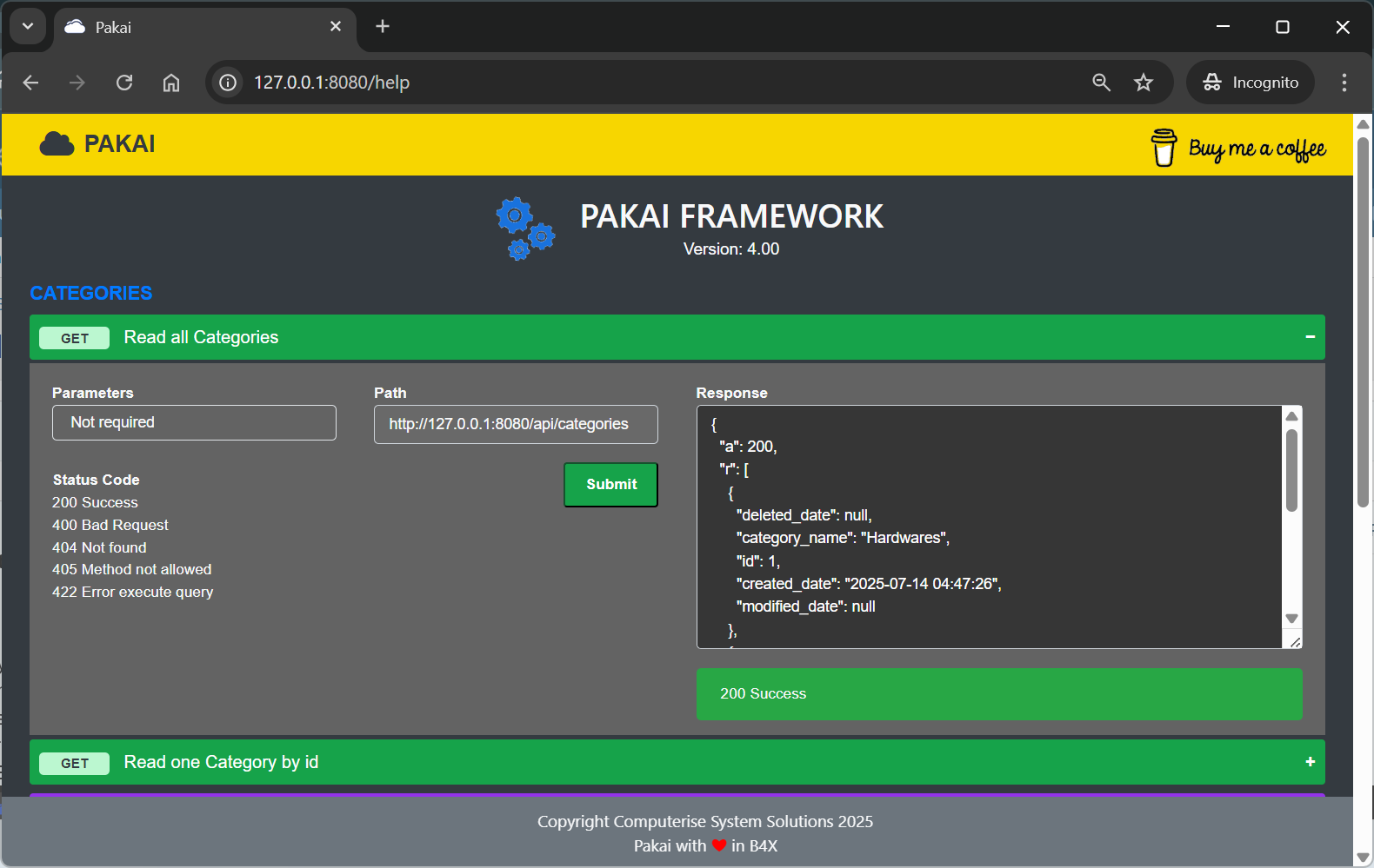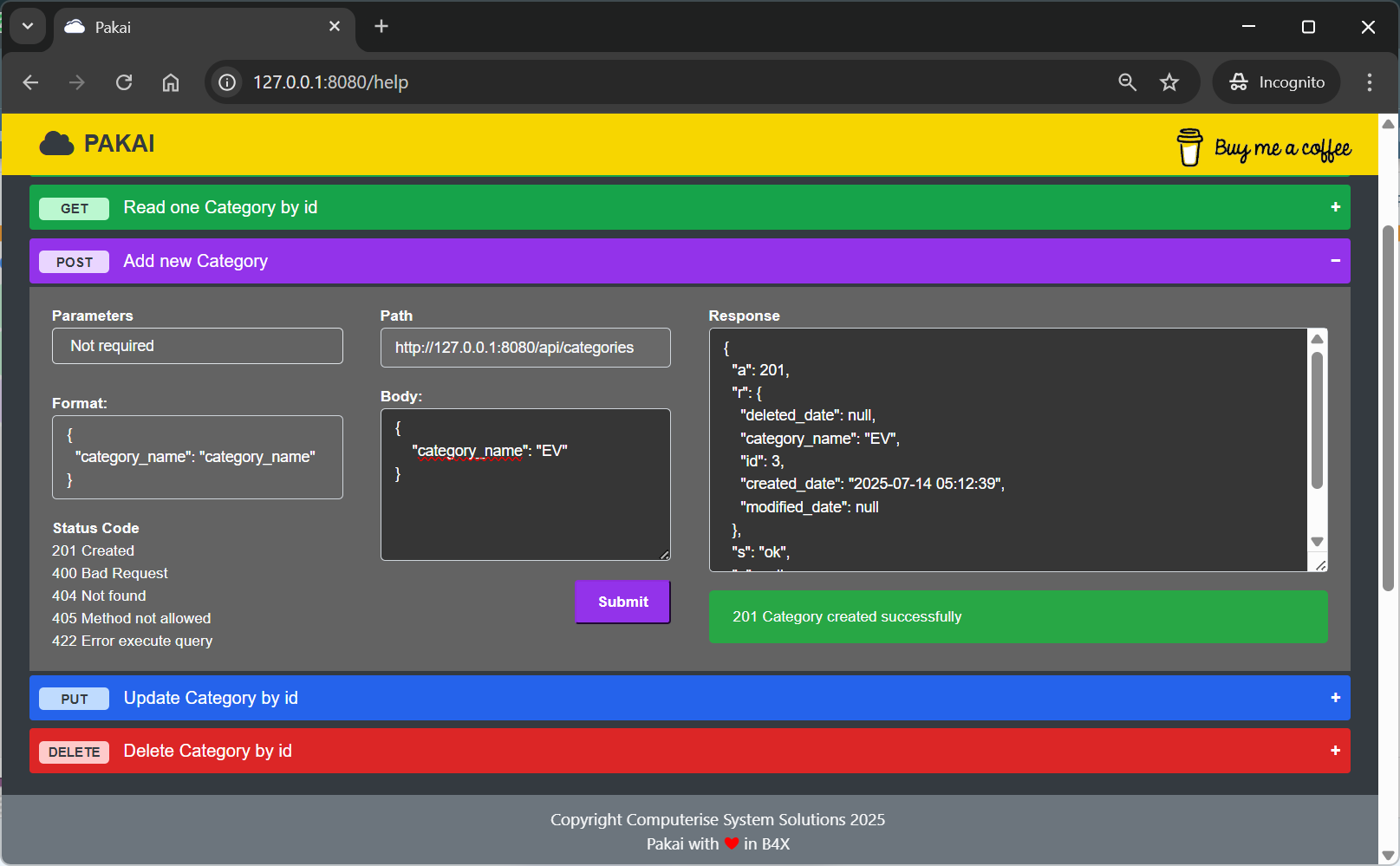 - To test a POST endpoint, click the third item which labeled [POST] Add new Category.