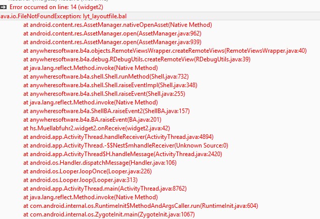 Ich bekomme immer bei der Erstellung eines Widget's immer eine FileNotFound-Exception. Angeblich wird das Layoutfile nicht gefunden. Siehe Bild unten.