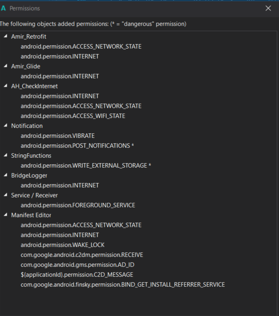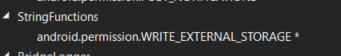 I have dangerous permission android.permission.WRITE_EXTERNAL_STORAGE * and in list permissions says it comes from a string function