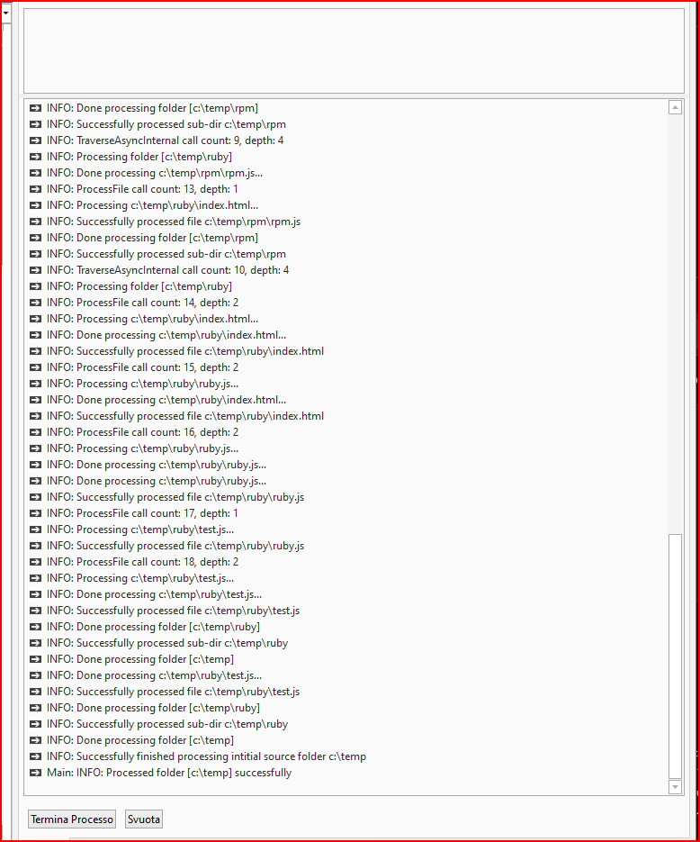 Log(" ") : Log ("FOLDER MINIFICATION END. SHOULD ONLY CALLED AT END WHEN PROCESSED RECURSIVELY FOLDERS, SUBFOLDERS AND FILES ONE BY ONE WITH For Each") ' <<<<< THIS IS CALLED MORE TIMES BUT SHOULD ONLY CALLED ONE TIME