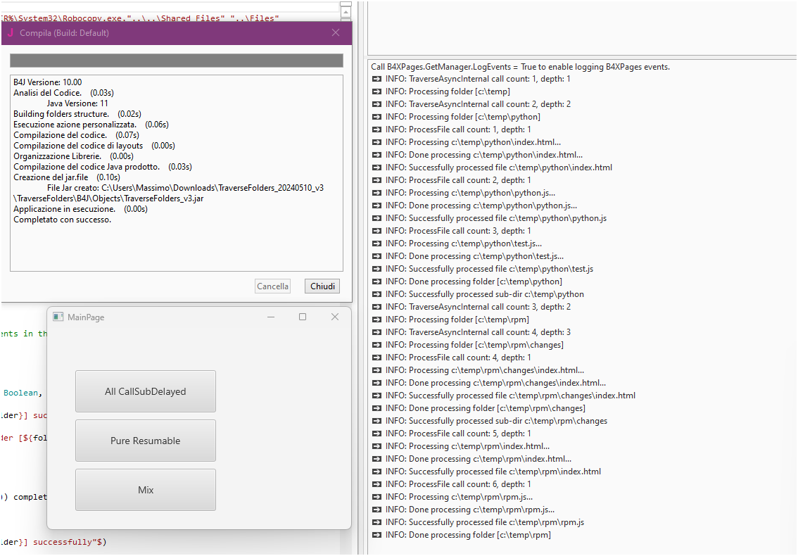 a Wait For wait for all files are processed recursively and then the result return should return back to the calling sub (a Wait For in the Main)