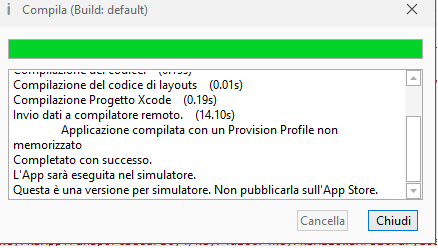L'App sarà eseguita nel simulatore.