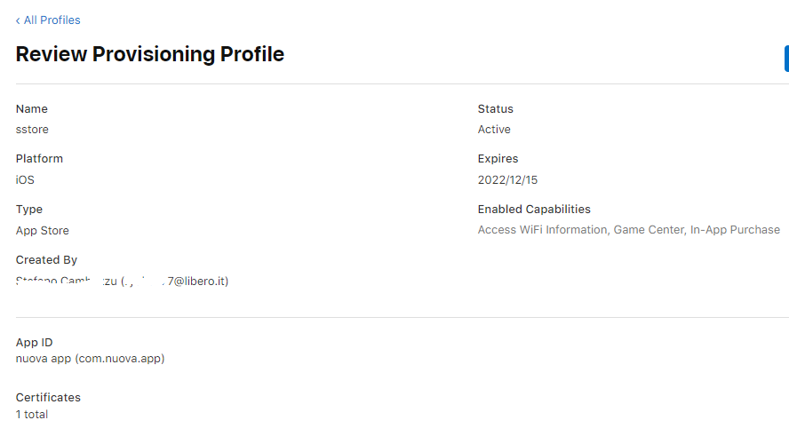 crea il Provisioning-Profile: