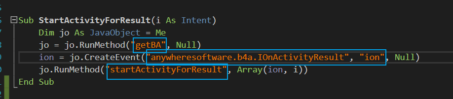 ion = jo.CreateEvent("anywheresoftware.b4a.IOnActivityResult", "ion", Null)
