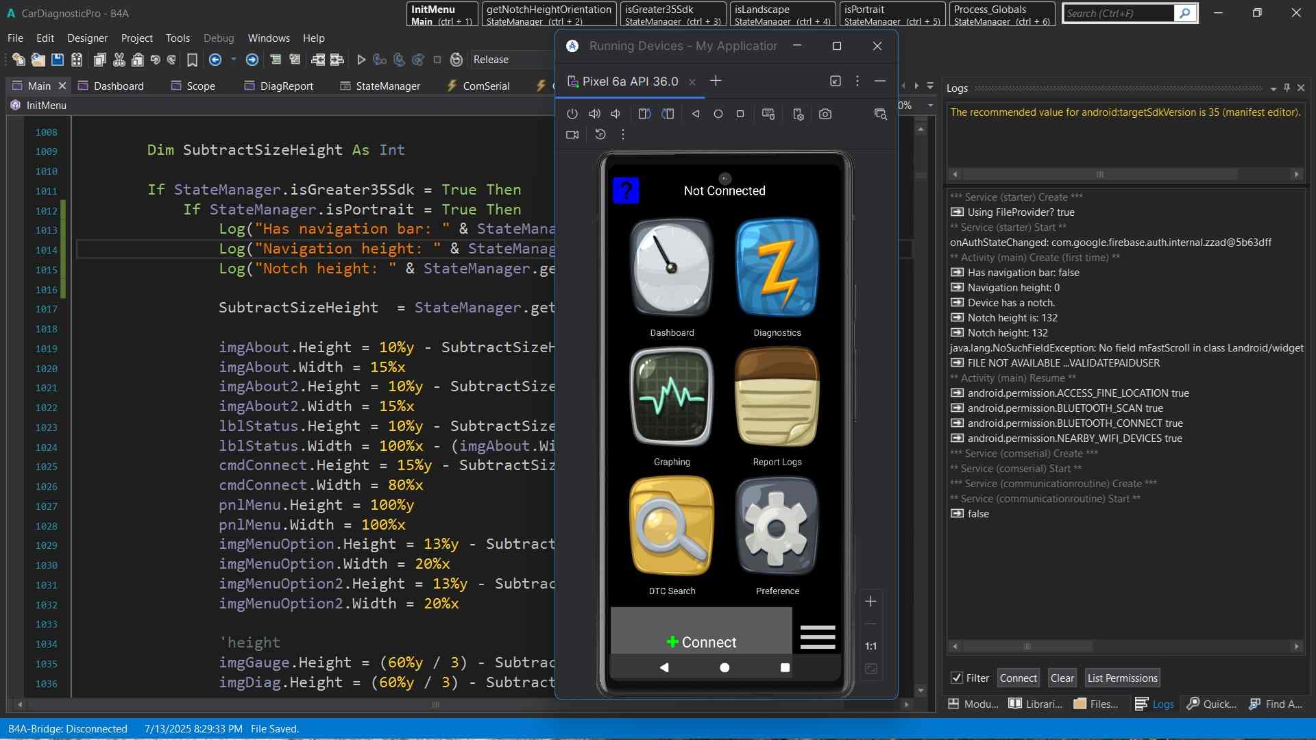 I tried TargetSdk at 35. Bad results. notch and nav bar at 0 height. Emulator issue??