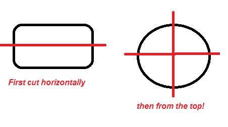 alvinmb gave the right answer: slice it horizontally into two and then two cuts top to bottom, and left to right ( 3 cuts)