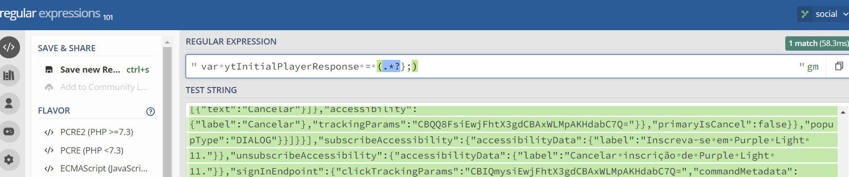 pattern = "var ytInitialPlayerResponse = (.*?};)" 'one or more digits