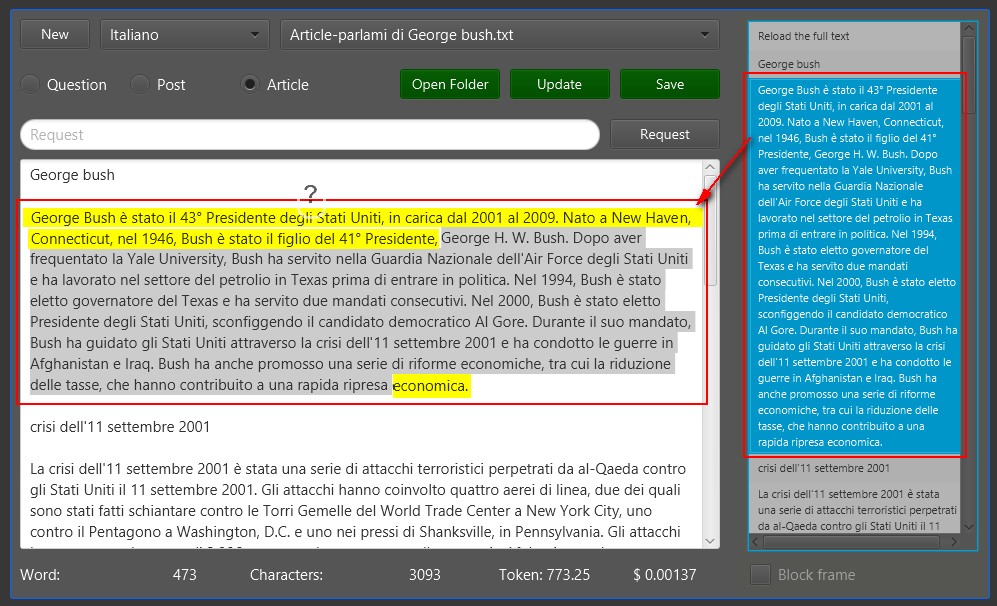 I need to select a text or a part of it by passing the search string