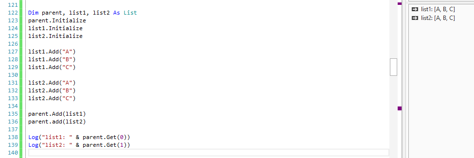 I have a simple library that returns a B4X List of Lists, here is a snippet of the library.