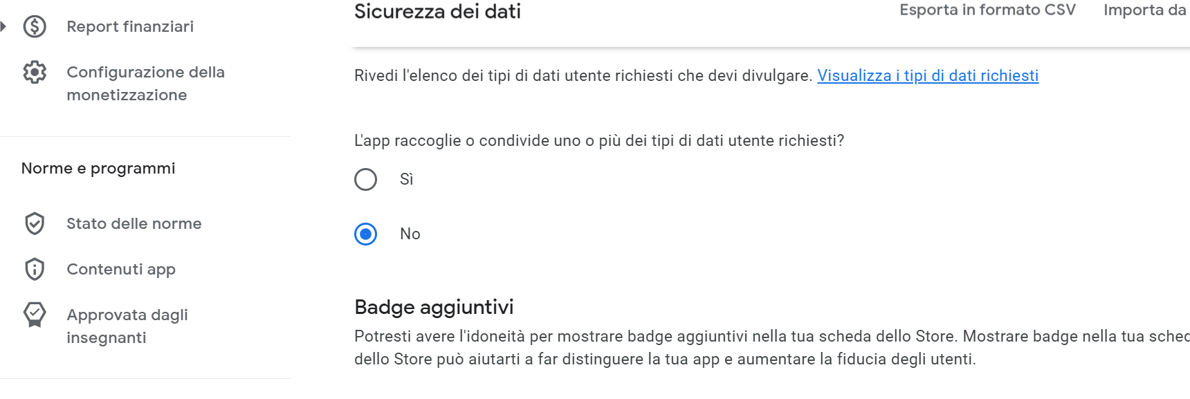 Premetto che la mia app non raccoglie ne crea account.