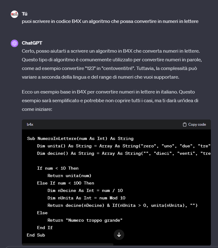 Lo ha chiamato (ChatGPT) "ConvertiCento" perchè inizialmente ero partito con una domanda "light"Perché lo hai chiamato "ConvertiCento"? Volevi convertire solo numeri fino a cento o... era il centesimo tentativo di ChatGPT? ?