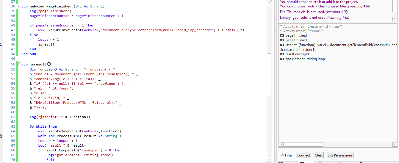 uwv.ExecuteJavaScript2("(function(){ if (document.getElementById('cosaspid') == null) return 'n'; else return 'y'; })()")