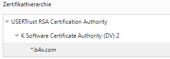 - USERTrust in that case signed/issued a certificate for K Software and these guys were allowed to sign/issue a certificate for b4x.com