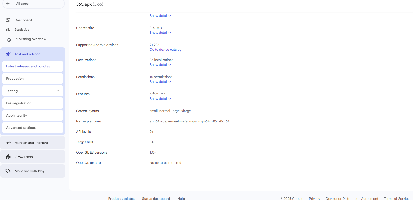 The script analyzes apk, aar, aab or zip files.